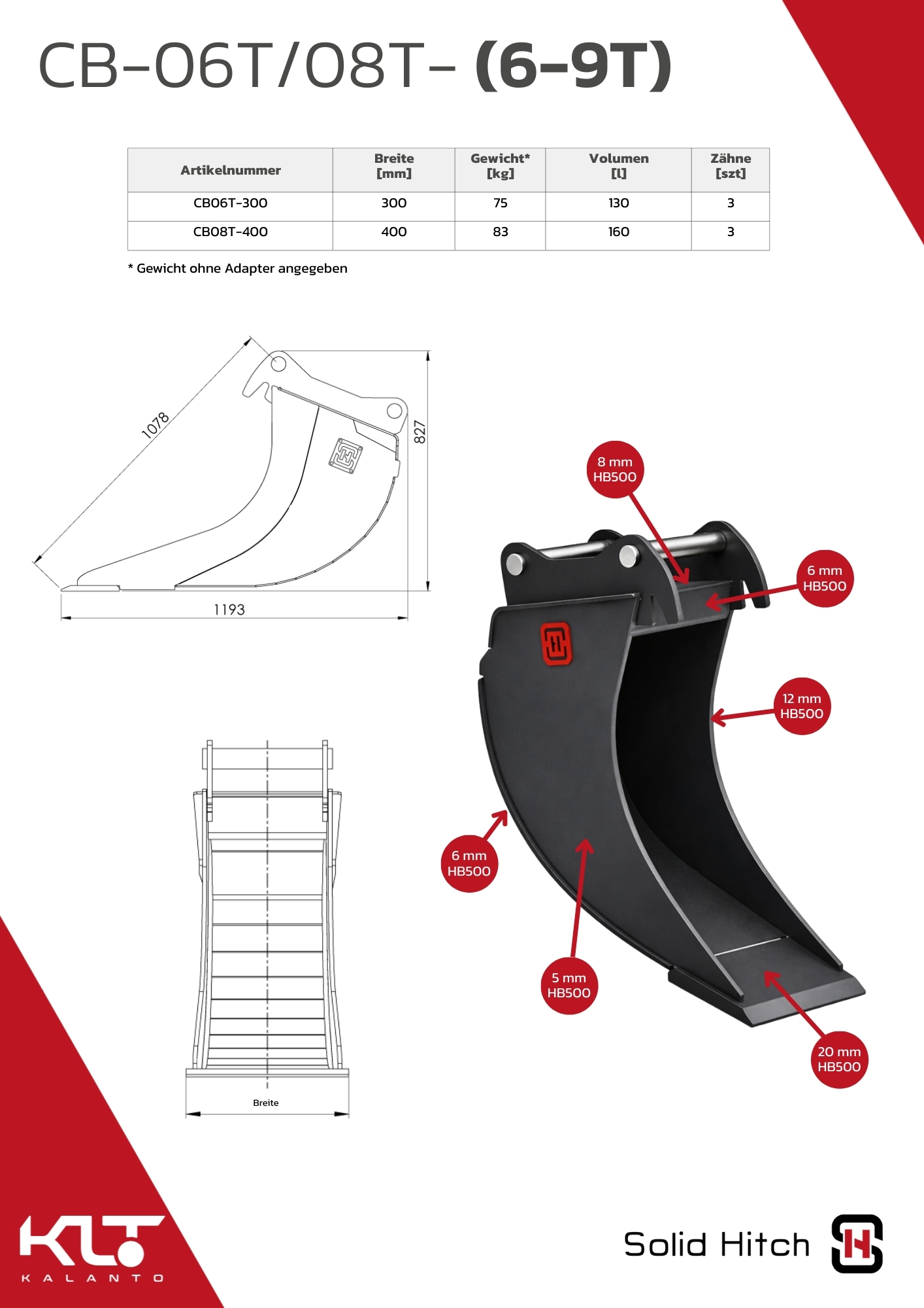 | Vordere Seitenplatten: | 12 mm | Hardox 500 Tuf |