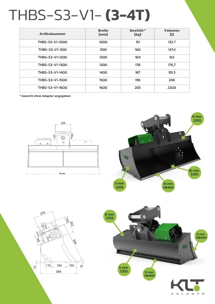 Das Modell THBS-S3-V1-1400-S40-RB ist ein äußerst robuster hydraulischer Schwenk-Grabenräumlöffel für Bagger mit einem Betriebsgewicht von 3–4 Tonnen. Ausgestattet mit einem praktischen hinteren Planiermesser ermöglicht er ein effektives Einebnen des Bodens auch beim Rückwärtsfahren, was den Arbeitsablauf spürbar beschleunigt. Der hydraulische Schwenkmechanismus bietet präzise Kontrolle über den Arbeitswinkel und eignet sich hervorragend für den Einsatz in engen oder unebenen Bereichen.