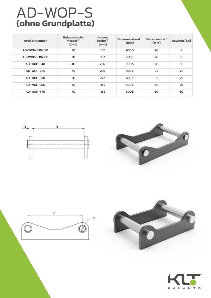 | Bolzendurchmesser [mm] | Innenbreite [mm] | Bolzenabstand [mm] | |