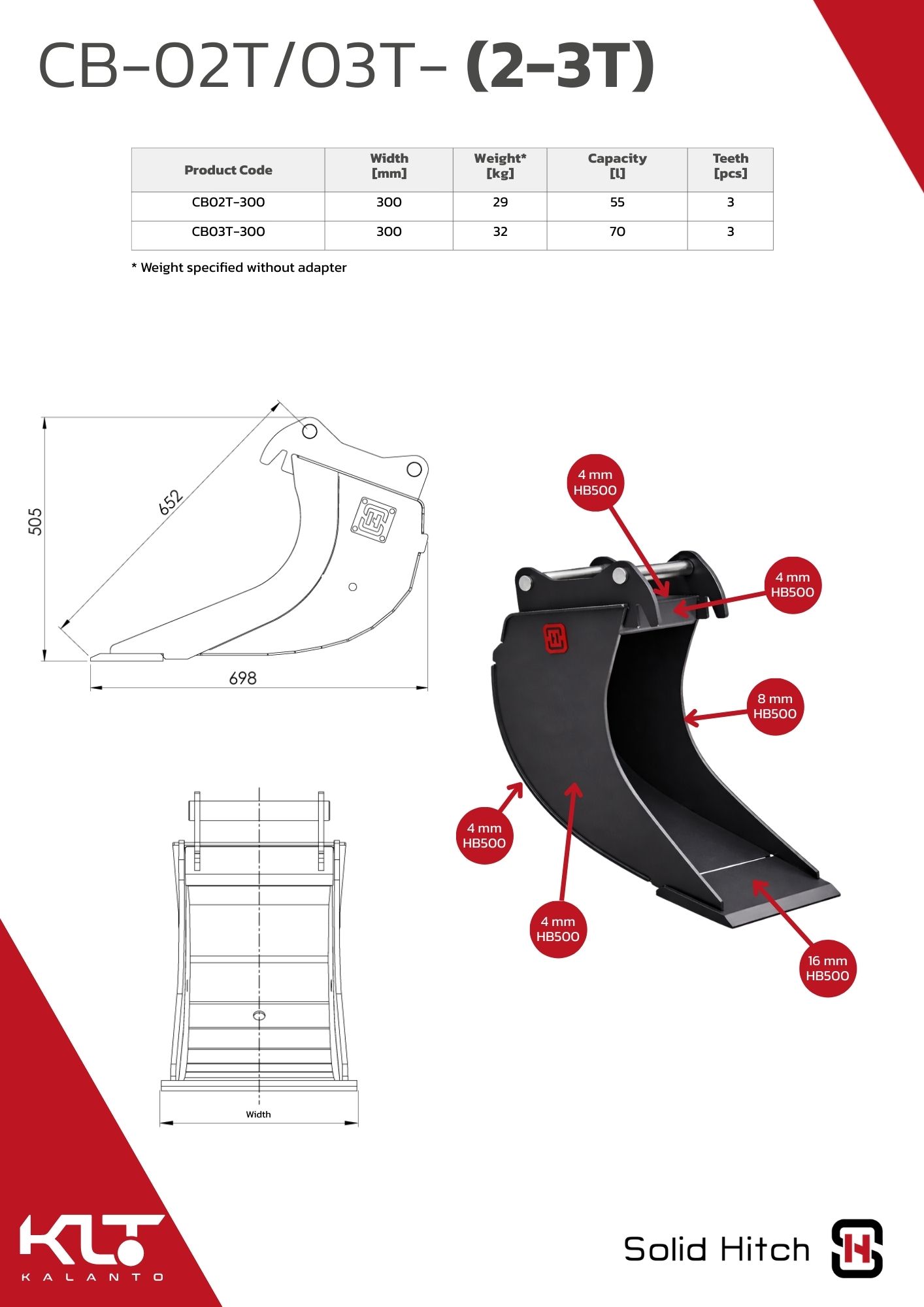 | Top plate: | 4 mm | Hardox 500 Tuf |