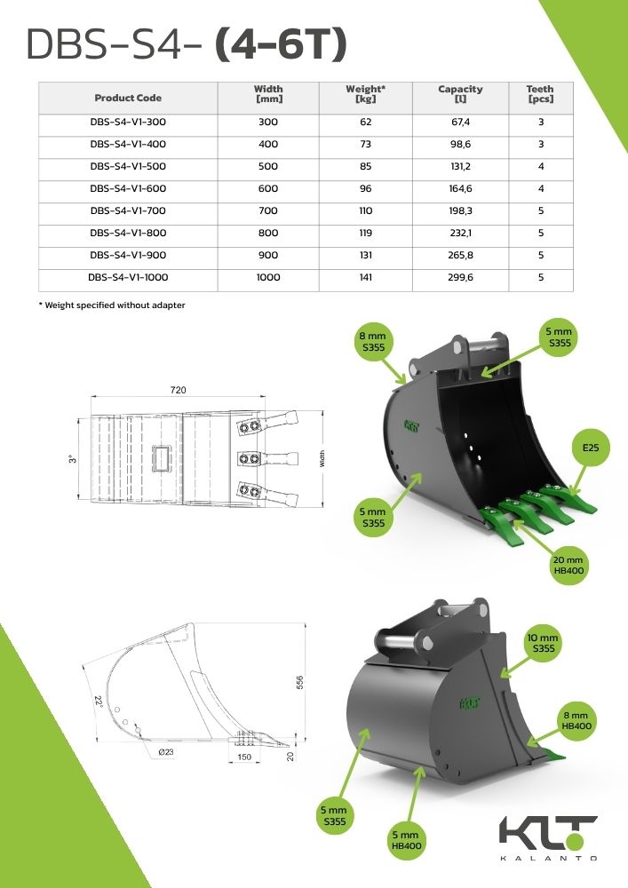 | Width [mm] | Weight* [kg] | Capacity [l] | Teeth [pcs] |