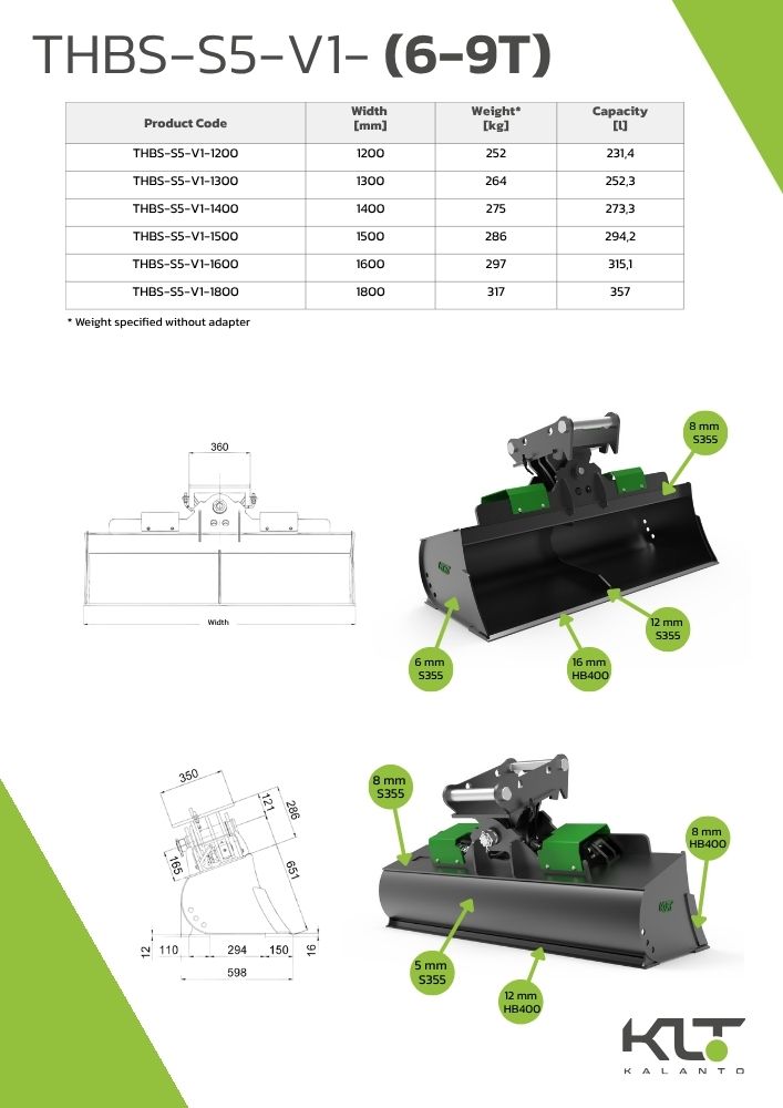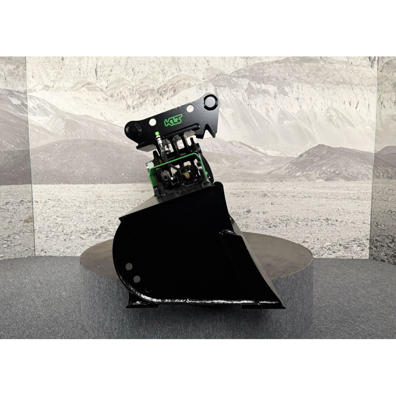 The THBS-S5-V1-1600-MS08SY-RB hydraulic tilt bucket is an advanced tool designed for terrain profiling, slope shaping and ditch cleaning using excavators weighing between 6 and 9 tons. The use of two hydraulic cylinders ensures even distribution of tilting force throughout the mechanism, resulting in improved stability and reduced structural stress when working at an angle. Additionally, the bucket is equipped with a rear leveling blade that enables efficient operation in both directions, significantly increasing productivity and versatility.