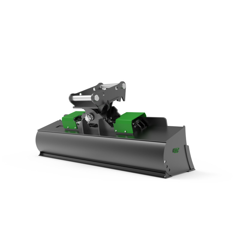 The THBS-S5-V1-1800-MS08SY-RB hydraulic tilt bucket is designed for precise terrain work with excavators weighing 6–9 tons. Its dual-cylinder system delivers balanced tilting force across the entire mechanism, improving control and reducing strain on structural components. The rear leveling blade allows effective grading and smoothing even during reverse movement. Thanks to its durable construction made from abrasion-resistant materials, the bucket is ideal for intensive, everyday use on construction sites.