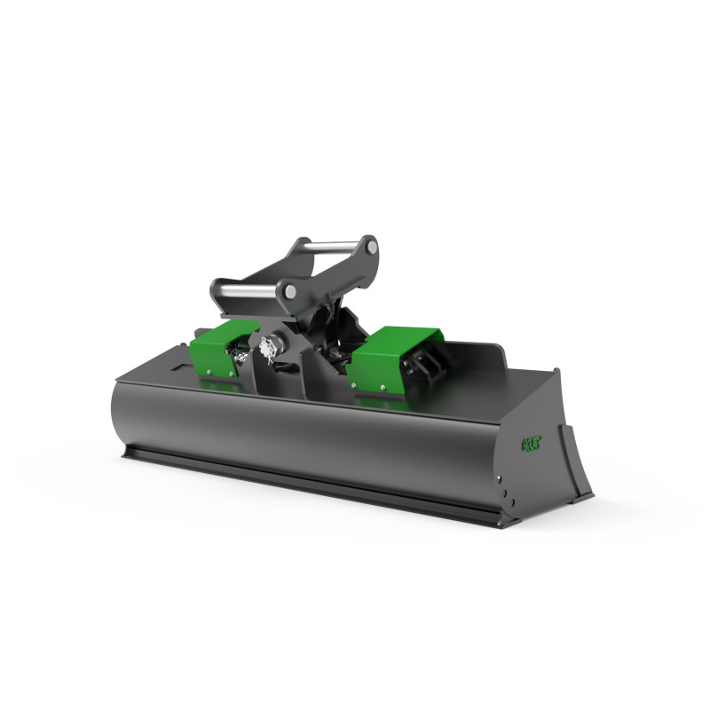 The THBS-S5-V1-1800-S45-RB is a solid and high-performance hydraulic tilting grading bucket designed for heavy-duty use with 6–9-ton excavators. Its two hydraulic cylinders ensure stable and consistent tilt operation, providing precise angle control and smooth maneuverability. The rear blade supports two-direction work, significantly speeding up terrain profiling tasks. With reinforced, wear-resistant structural components, the bucket offers long service life and dependable performance in challenging field conditions.