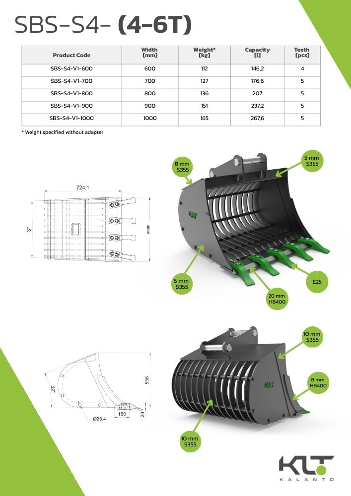 | Width [mm] | Weight* [kg] | Capacity [l] | Teeth [pcs] |
