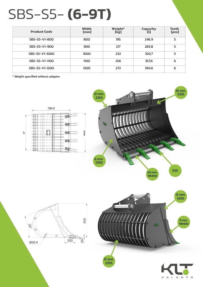 The SBS-S5-V1-1200-S45 model is a large, heavy-duty skeleton bucket created for intensive use with 6–9-ton excavators. Its ribbed shell ensures effective separation of soil, rubble, stones and other unwanted fractions, significantly improving sorting and cleanup processes. With its refined construction, abrasion resistance and high structural rigidity, the bucket excels in earthmoving, land reclamation and all applications where material quality and screening performance are critical.