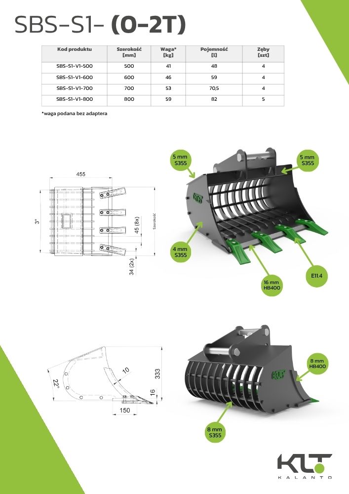 Model SBS-S5-V1-800-MS08SY to łyżka ażurowa zaprojektowana do pracy z koparkami o masie od 6 do 9 ton. Stworzona z myślą o intensywnej eksploatacji, idealnie sprawdza się w przesiewaniu, segregacji i oczyszczaniu materiału bez potrzeby stosowania dodatkowego osprzętu. Wysokiej klasy stal, wzmocnienia w newralgicznych punktach oraz przemyślana geometria sprawiają, że SBS-S5 to niezawodne narzędzie do prac ziemnych, porządkowych i sortujących tam, gdzie liczy się trwałość, skuteczność i komfort pracy w trudnych warunkach terenowych.